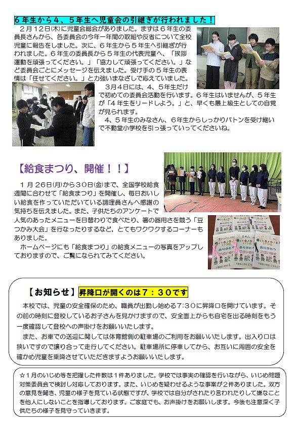 不動堂小学校だより