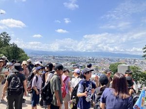 この日のために、子どもたちは班に分かれ、協力しながら自分たちだけの研修ルートを作成してきました。飯盛山からスタートして、まちなか周遊バスや徒歩で移動し、鶴ヶ城を目指しながら、福島県立博物館や会津新撰組記念館など、会津の歴史や文化を学べる名所を巡りました。自分たちの力で目的地を探し、時間通りに行動できるよう協力しながら頑張っていました。鶴ヶ城にたどり着くと、疲れの中にも無事着いたことへの安堵と体験してきたことへの喜びが表情に表れていました。