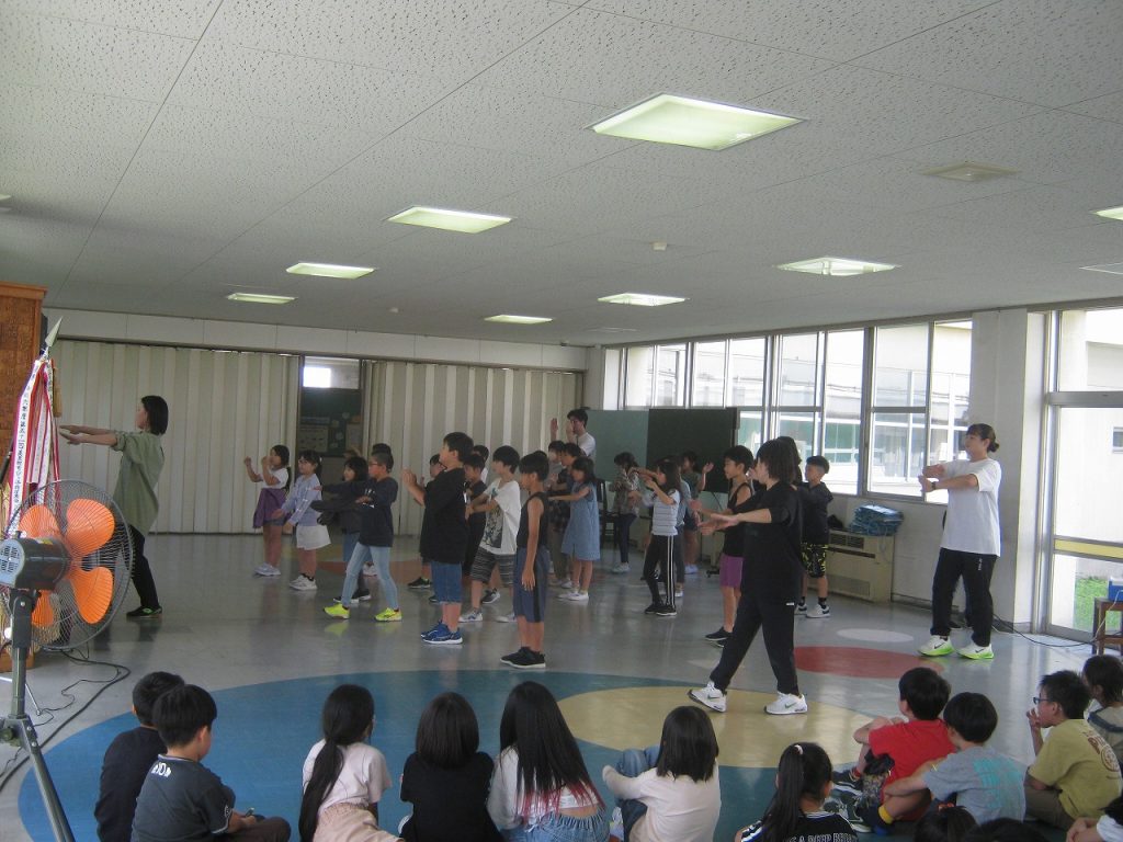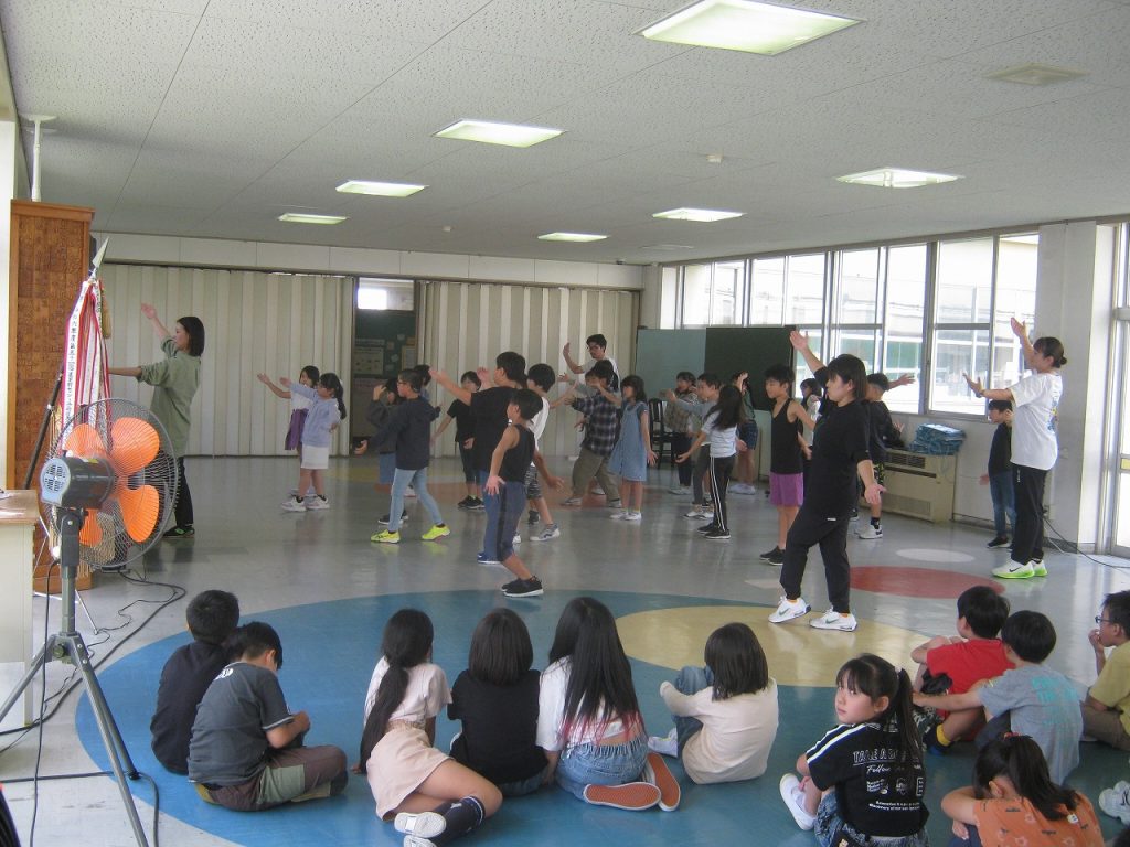 同じく2校時。3年生は学習発表会に向けて、日本舞踊教室を行っている西崎先生をお迎えして「みさとまち音頭」を教えていただいていました。先週から、毎週木、金とおいでいただき伝承していただいています。美里町合併のときにつくられた「みさとまち音頭」を今年20年を迎える今、子供たちから広められたらという思いで練習を始めました。学習発表会の披露をお楽しみにしてください。