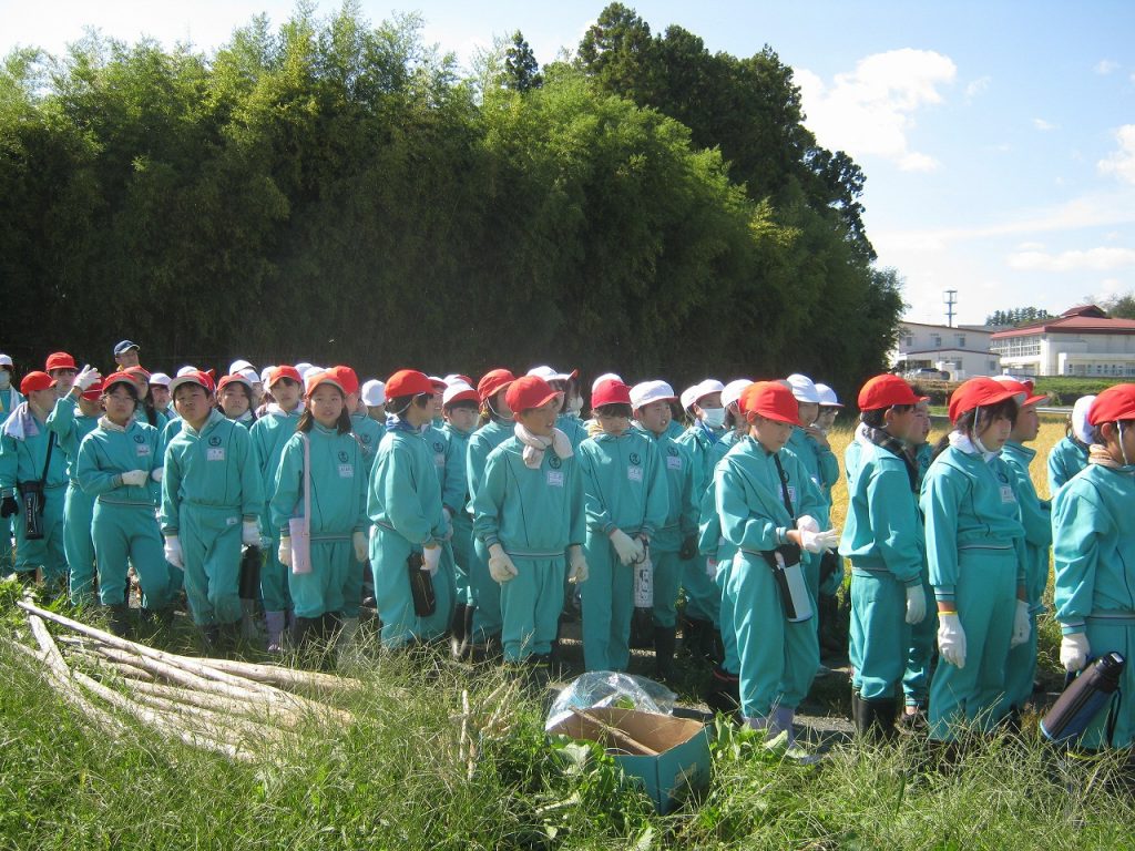 すがすがしい秋晴れの下、たわわに実った稲穂を子供たちが一生懸命刈りました。10月にしては暑すぎる天候だったにもかかわらず、真剣にそして熱心に子供たちは稲を刈っていました。束ねた稲を稲袈掛けをして干しています。次の作業は脱穀です。