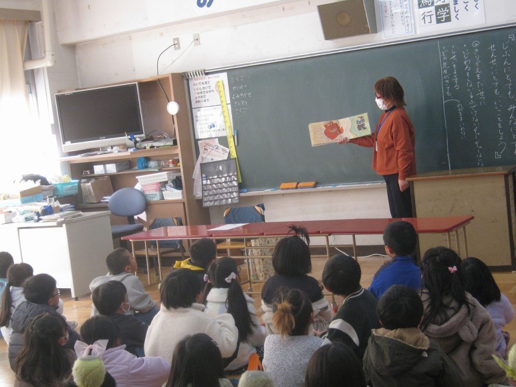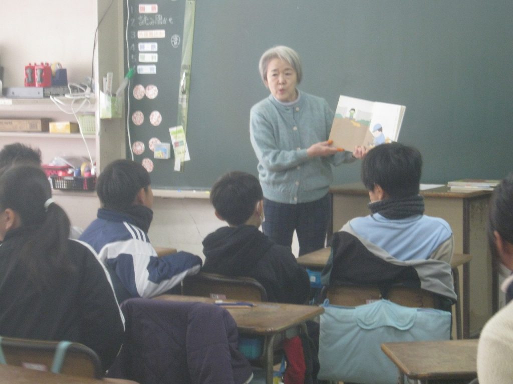 さて、今週は「図書祭り」を行っています。スタンプラリーを行ったり、図書委員会の子供たちが読み聞かせを行ったり、本により親しめるよう工夫した取り組みをしています。また、本の読み聞かせボランティアの「かけはし」さんに来校していただき、読み聞かせもしていただいています。今日は、1年生と4年生にしてもらいました。1年生では日本の昔話を題材に「だいくとおにろく」「ずいとんさん」などを読んでいただきました。4年生では「友達とのかかわり」を題材に「ともだち」「けんかのきもち」「どんなかんじかなぁ」などを読んでいただきました。子供たちは、どんどん本の世界に入り込み、とても真剣にお話をきいていました。