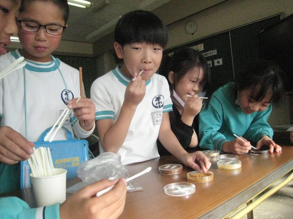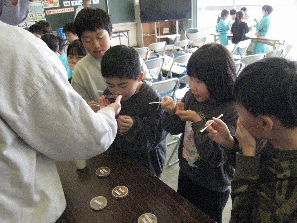 2025年11月28日 / 最終更新日時 : 2025年11月28日 info-fudodo 不動堂小学校ブログ 3年 総合的な学習 「大豆のへんしん!」 11月21日 3年生が総合的な学習で取り組んでいる「大豆のへんしん!」の学習で、「仙台みそ博士」をお迎えして出前授業を受けました。子供たちは目を輝かせ、舌を敏感にさせながら学習に取り組んでいました。