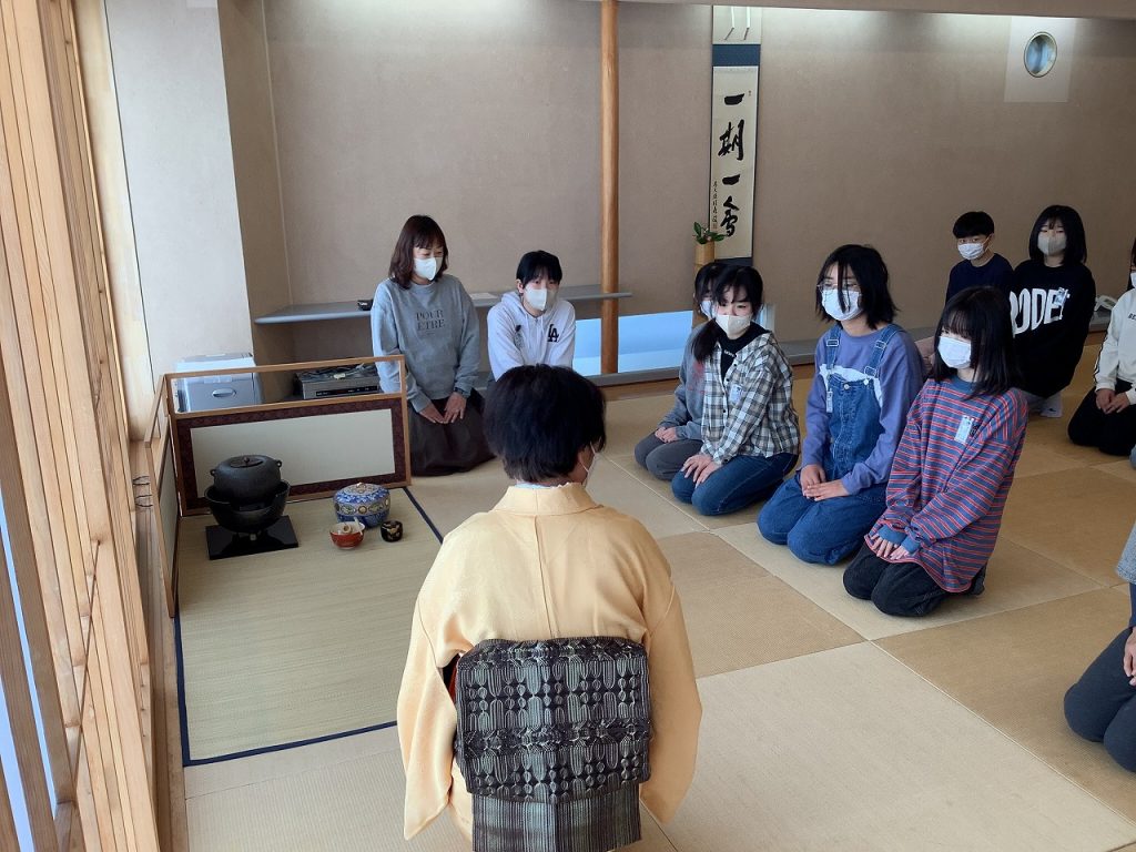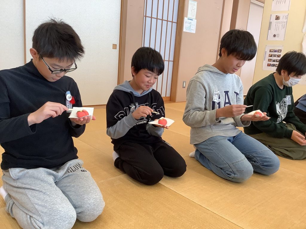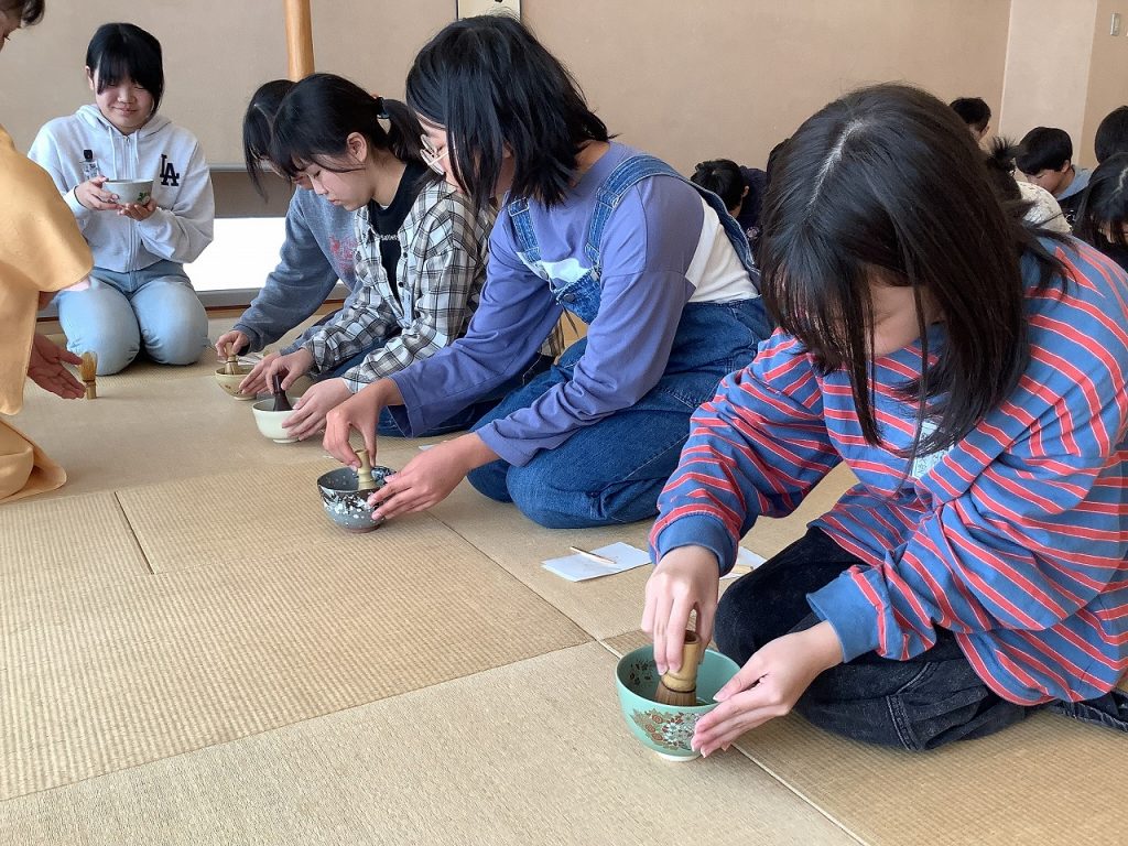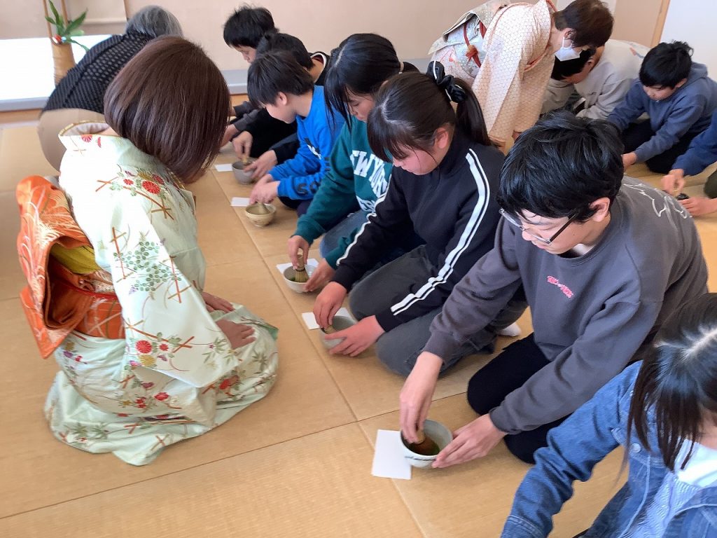 11月27日 6年生が社会科の学習で茶道体験に取り組みました。室町時代に生まれた国風文化に触れることで学びを深める活動です。講師の先生から茶道の流派や歴史の講話を聴きながら、お茶やお菓子をいただく体験は大変貴重で、子供たちも大変意欲的に参加しました。