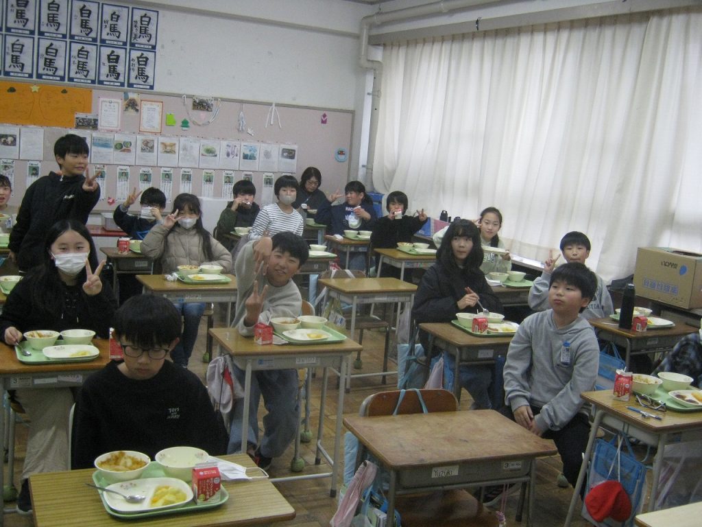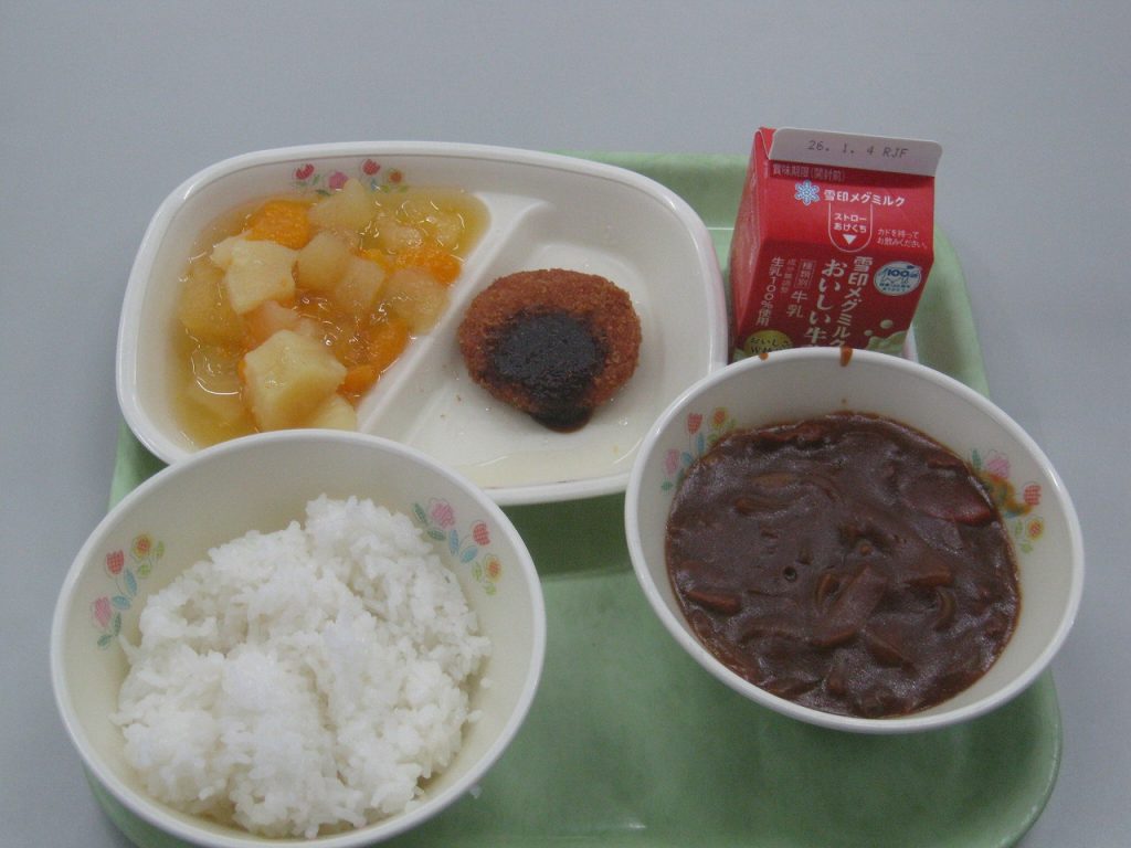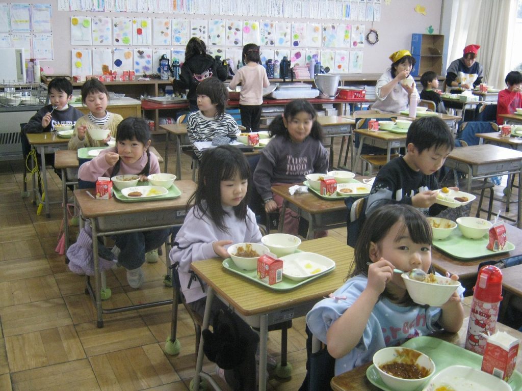 そして、今日は給食が今年最後となりました。子供たちが大好きなメニューのハヤシライス、フルーツポンチ、ハムカツなどです。教室を回ってみるとペロッと平らげ、お代わりをする姿も。食事を楽しんでいる様子が見られました。よく食べ、よく遊び、よく学び、よく寝る。健康な生活には欠かせないものです。