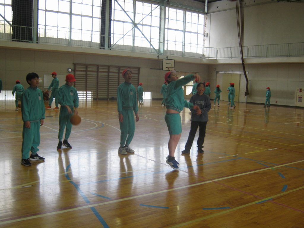 また、児童の体力運動能力向上コーディネーターの先生が来校し、体育の授業を参観したり、本校の取組を話したりし、体力を向上させるためのアドバイスをいただきました。スポーツテストの結果、本校では立ち幅跳びやシャトルランの記録が低かったことから、他校の取組なども参考に教えていただきました。子供たちの運動量の確保、遊びの工夫などたくさん参考となることを教えていただきました。