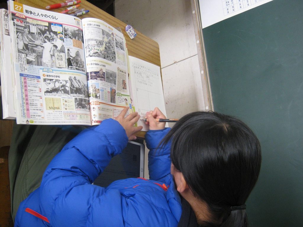 6年生は、社会の学習で、課題について調べまとめる活動をしていました。一人一人が工夫して、ノートにまとめ上げている姿に成長を感じました。
