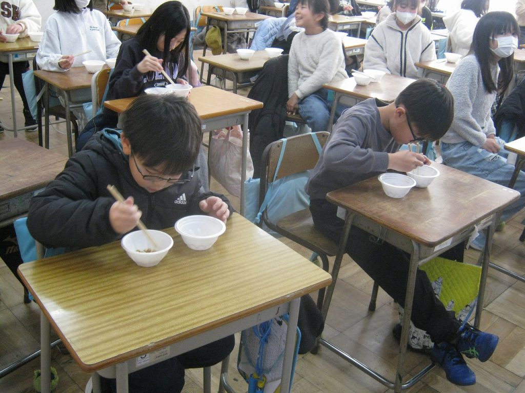 4年生は豆つかみの練習に取り組んでいました。今月行われる給食祭りの「豆つかみ大会」に向けて代表者となるために熱心に取り組んでいました。今週末からクラス予選が始まるので、みんな一生懸命です。はし使いのコツを教える姿も見られました。