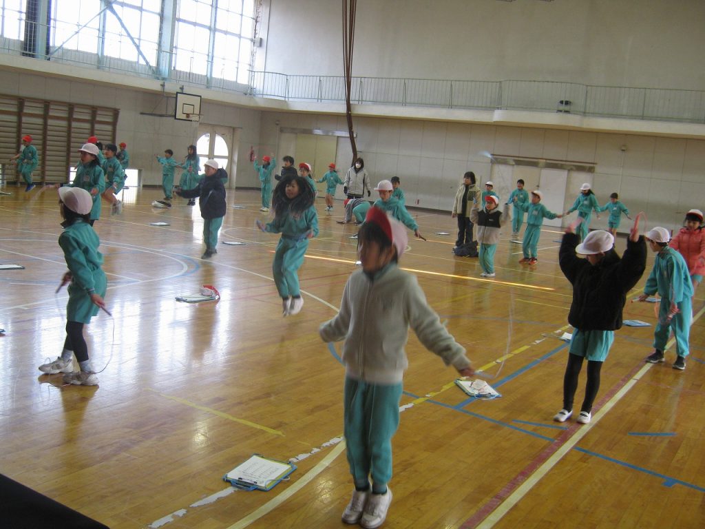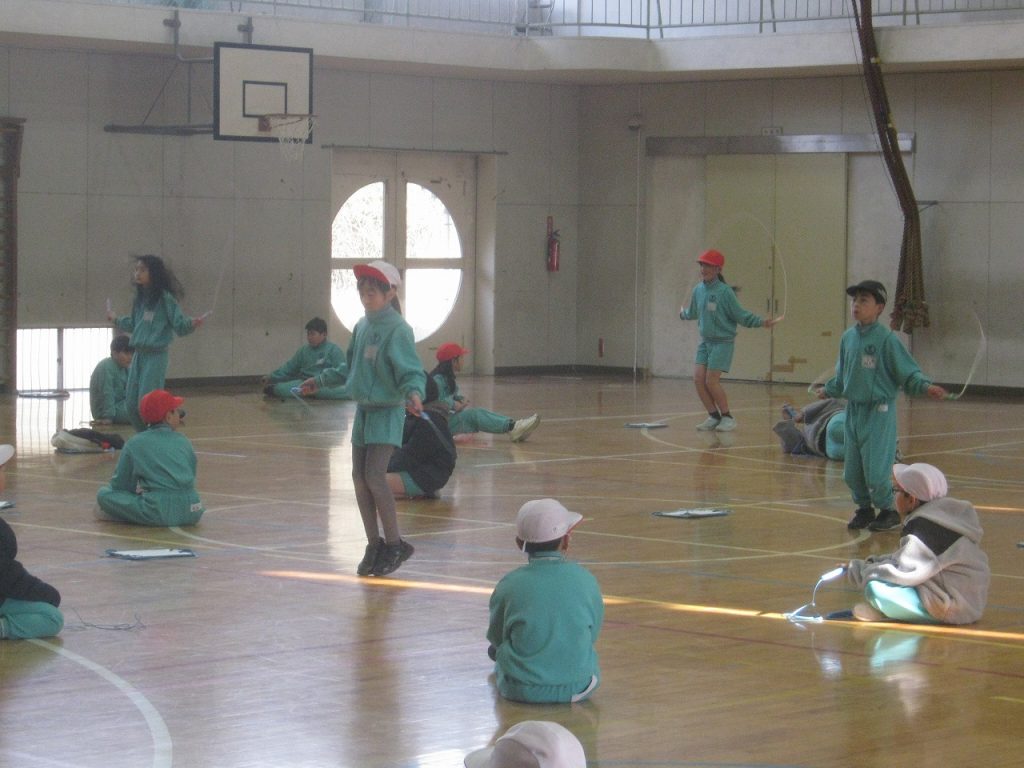 体育館では、3年生が縄跳びを練習していました。前跳びや後ろ跳びなどいろいろな技に挑戦していました。上手に飛んでいる友達の跳び方を見て、どうすると引っかからずに回数を続けられるのかを見つけながら取り入れていました。2月には短縄跳び記録会を計画しています。いい記録を残せるように頑張っていきたいと思います。