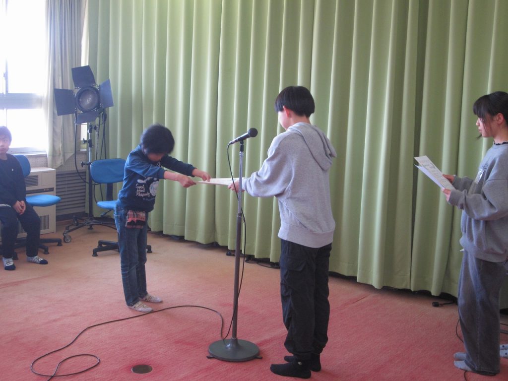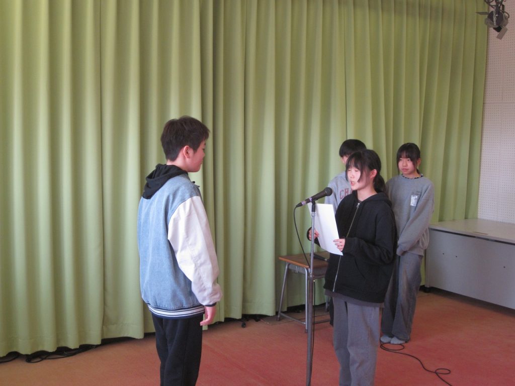 2月17日、「あいさつの花」表彰式を行いました。計画委員会が中心となって取り組んだ「あいさつ屋」。それを通してあいさつの花をたくさん咲かせることができました。そこでそれを賞して表彰式を行いました。その賞のネーミングもすごく素敵で、またあいさつを気持ちよくしようという思いを育てることができると思いました。紹介します。1年1組「にこにこあいさつ賞」1年2組「あいさつ花たば賞」2年1組「心ポカポカ賞」2年2組「自分からあいさつロケット賞」2年3組「カラフルな花を育てたで賞」3年1組「大きな声でできたで賞」3年2組「クラスの絆が深まったで賞」3年3組「目を見てあいさつできたで賞」4年1組「あいさつ100点満点賞」4年2組「ハッピーモーニング賞」4年3組「みんなで花びらGET!賞」5年1組「出会った人はみんな幸せで賞」5年2組「あいさつ魔法使い賞」5年3組「あいさつエンジン全開賞」6年1組「響きあう声で賞」6年2組「みんなが主役で賞」6年3組「さわやかあいさつ賞」たんぽぽ・ひまわり・コスモス学級「元気いっぱいあいさつ賞」みなさんおめでとうございます。これからも気持ちのいいあいさつを交わしていきましょう。