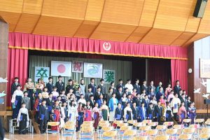 修了証とともに渡された通信表には、1年間のがんばりが残されています。通信表を励みに、新しい学年でも力を発揮することを期待しています。
