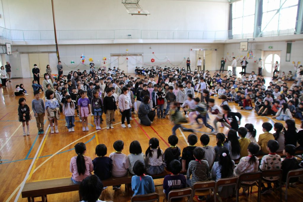 そのあとは、集会委員会が企画したゲームをしました。ゲームを通して、不動堂小学校の約束を覚えてもらおうと工夫して行いました。