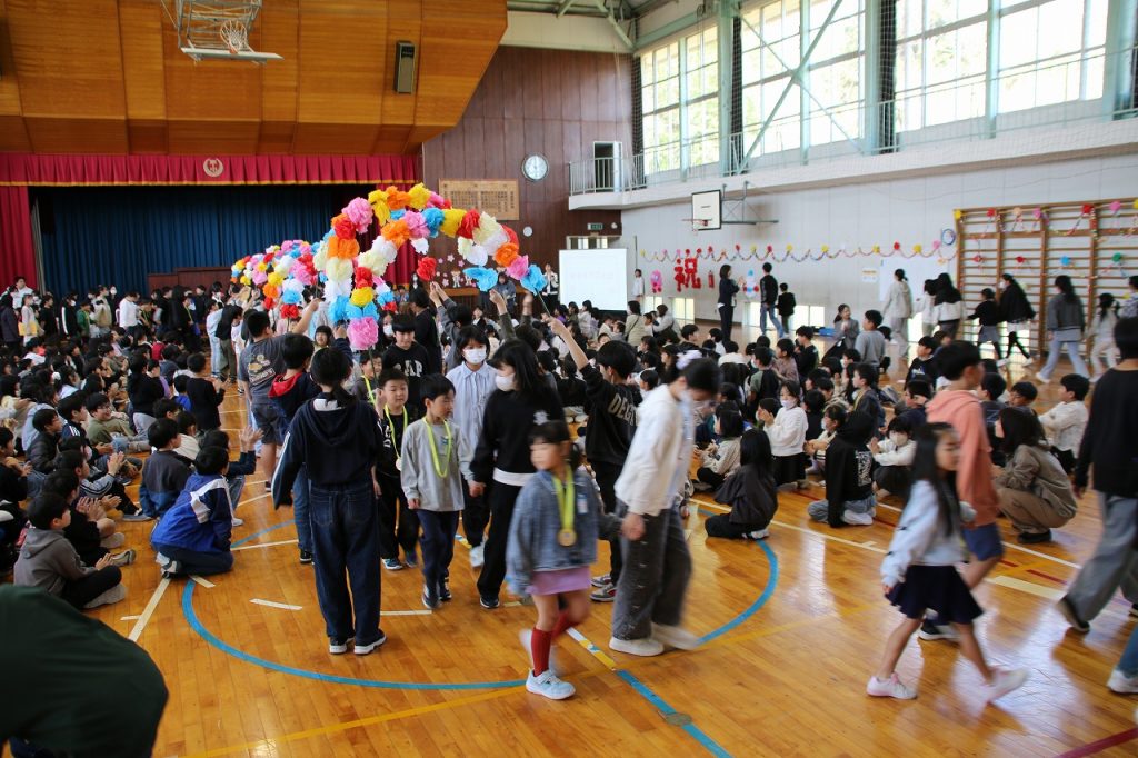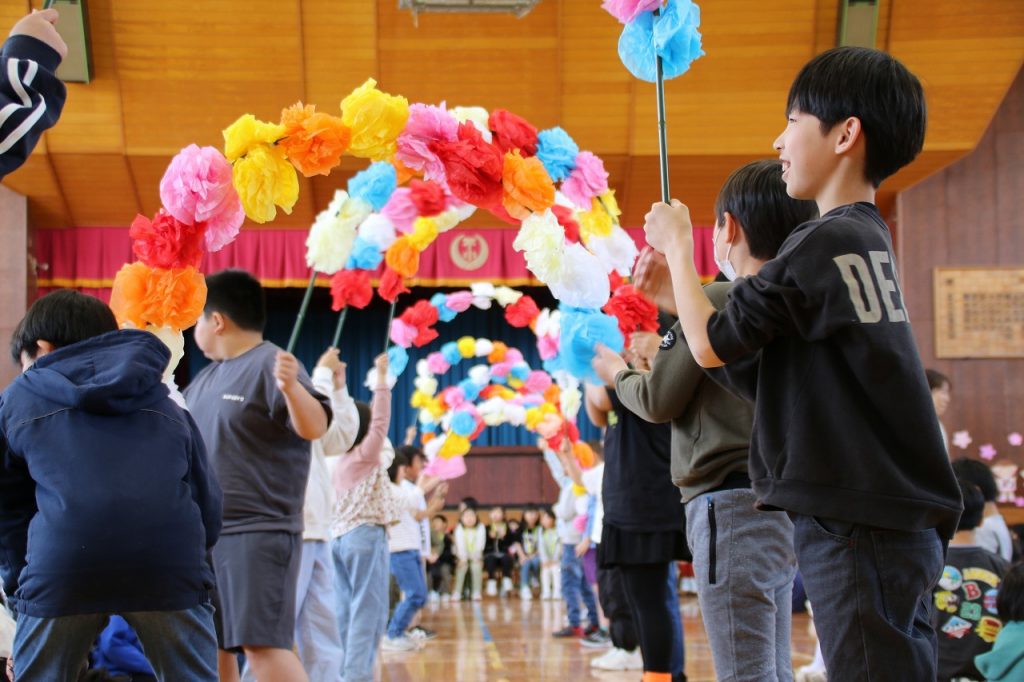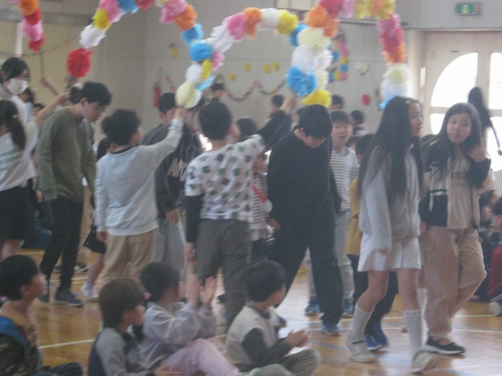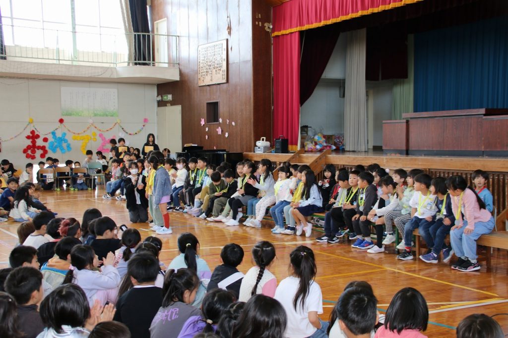 そして、1年生にプレゼントが送られました。4,5年生が準備したものです。全校児童が役割を分担して1年生を一生懸命迎えました。首飾り、学校の地図が渡されました。そうして、あっという間に楽しい時間は過ぎていきました。2年生以上の皆さんは、これから一生懸命1年生のお世話をしてくれることでしょう。1年生の皆さんも、学校をもっともっと知っていってくださいね。